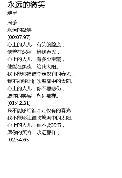 | [00:07.30] | 永远的微笑 |