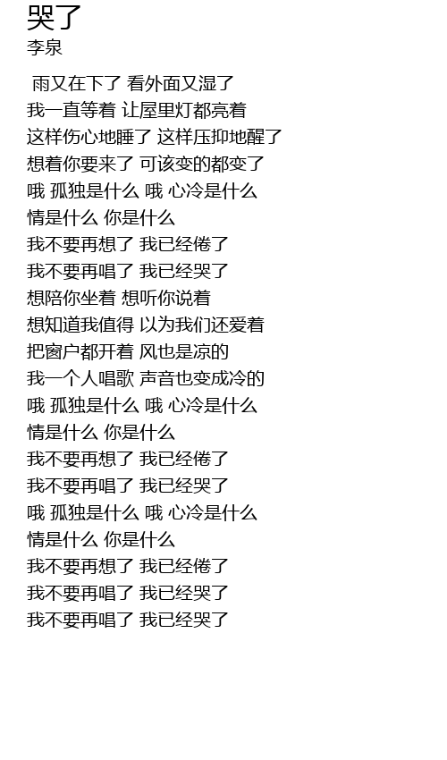 | [01:23.880] | wo bu yao zai chang le wo yi jing ku le |