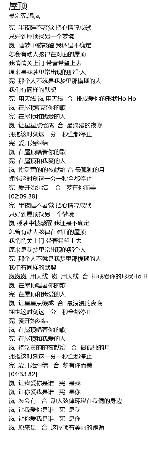 | [04:04.78] | 宪 在屋顶和我爱的人 |