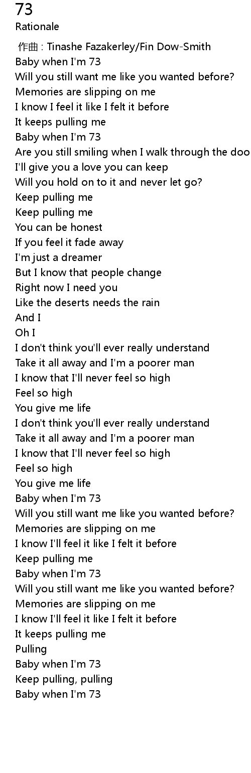 | [01:58.561] | Baby when I'm 73 |