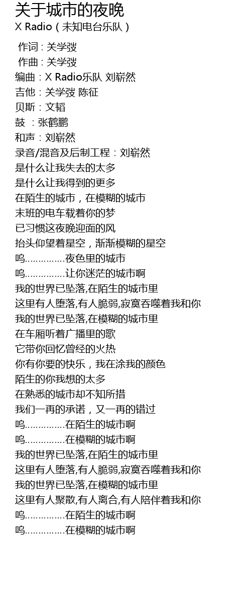 | [00:08.000] | 编曲:X Radio乐队 刘崭然 |