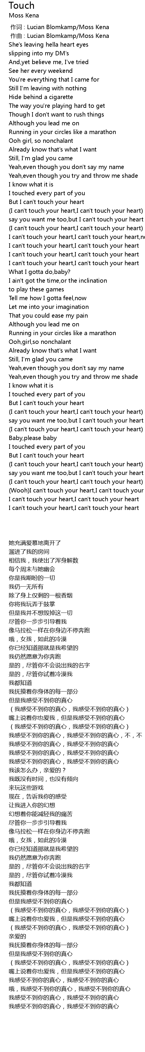 | [02:51.690] | I can' t touch your heart, I can' t touch your heart |