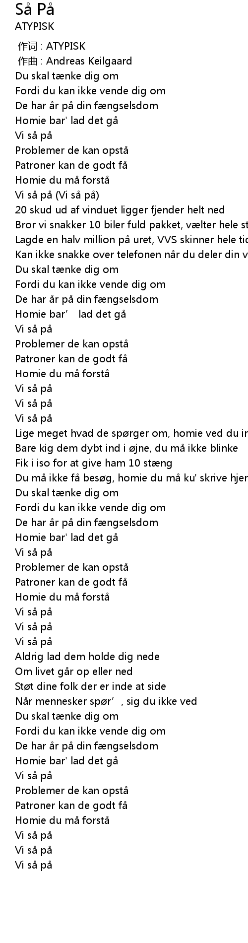 | [01:17.34] | Du må ikke få besøg, homie du må ku' skrive hjem |