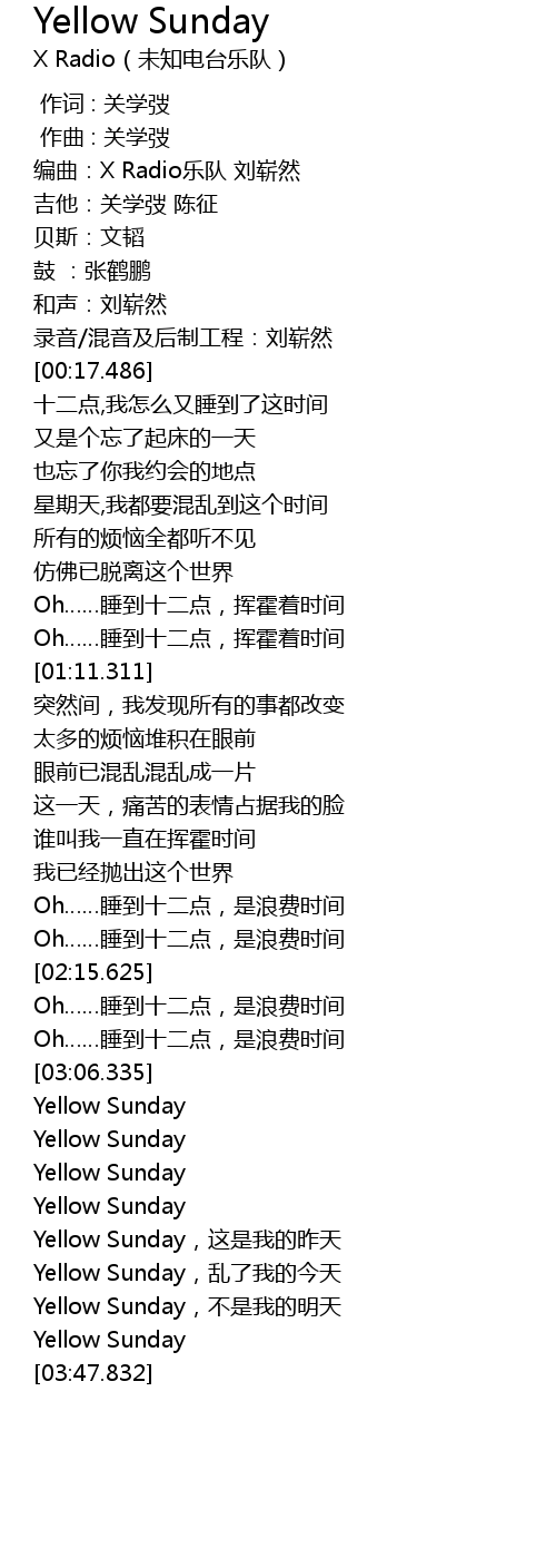 | [03:34.334] | Yellow Sunday, luan le wo de jin tian |