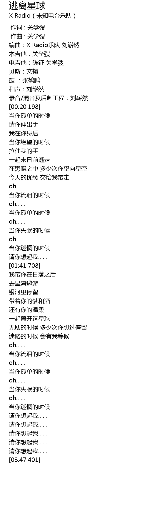 | [00:04.946] | 编曲:X Radio乐队 刘崭然 |