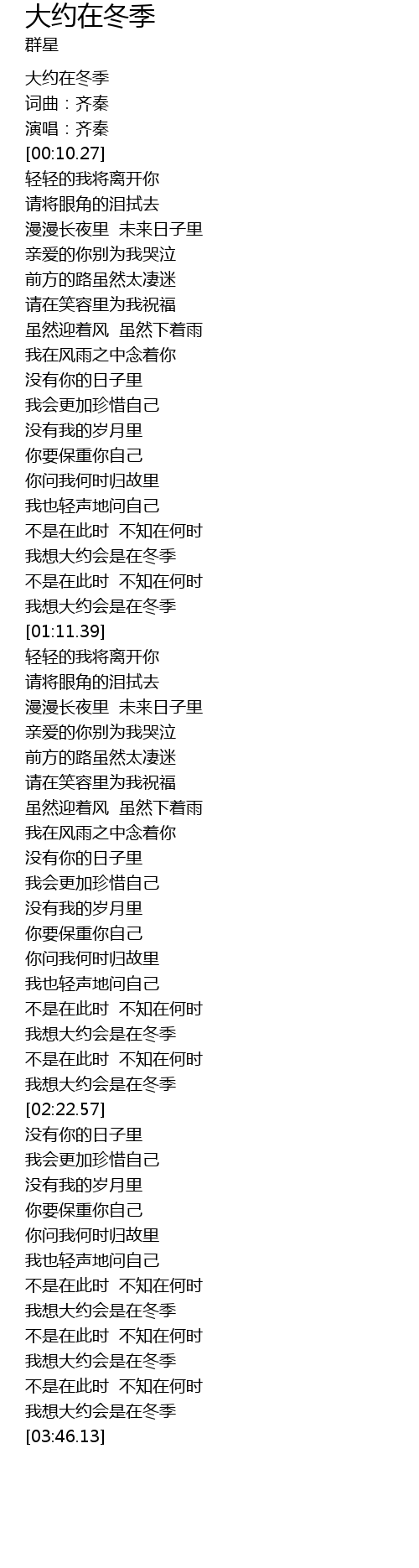 | [03:36.47] | 我想大约会是在冬季 |