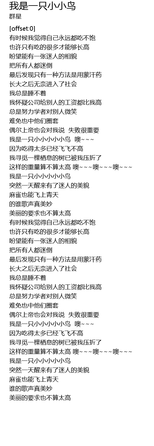 | [01:22.49] | 我是一只小小小小小鸟 噢~~~ |
