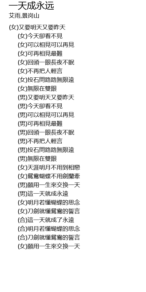 | hé zhè yì tiān jiù chéng le yǒng yuǎn | |