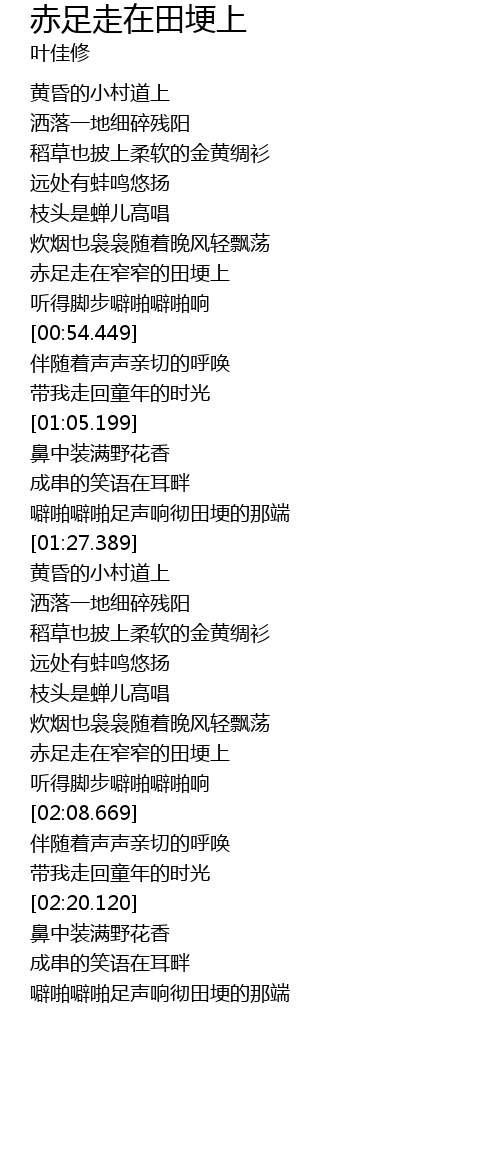 | [01:59.580] | 赤足走在窄窄的田埂上 |