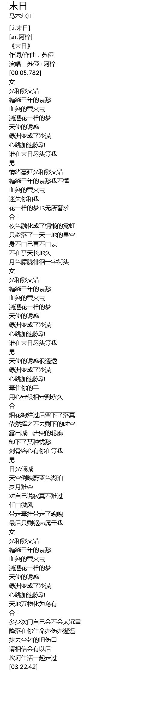 | [00:00.807] | 《末日》 |