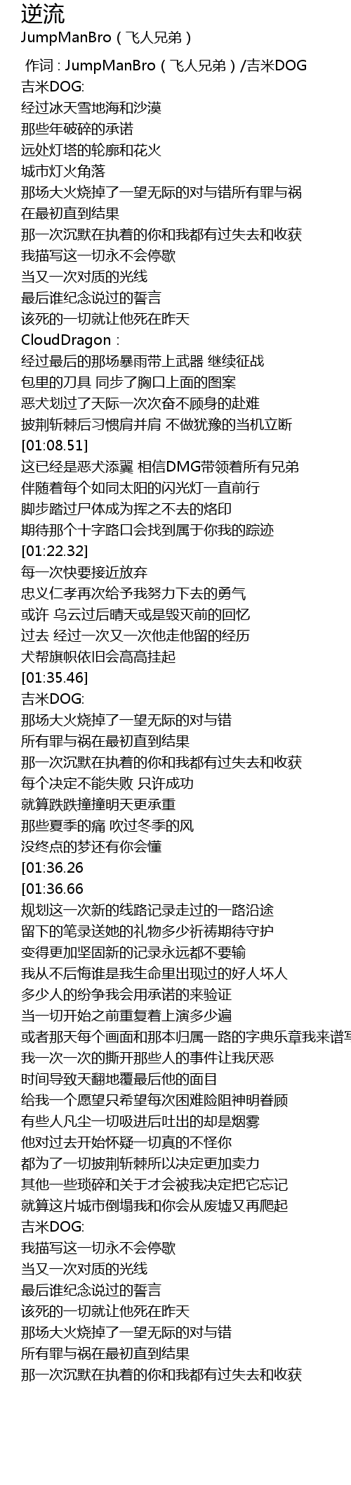 | [00:00.000] | 作词 : JumpManBro(飞人兄弟)/吉米DOG |