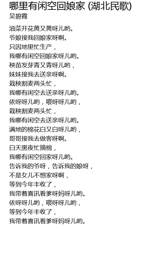 | Song | 哪里有闲空回娘家 (湖北民歌) |