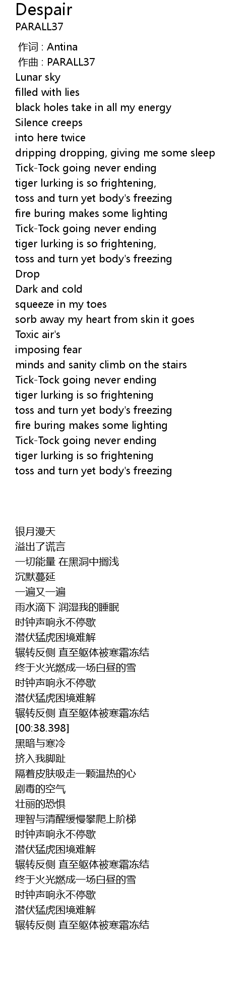| [01:38.549] | toss and turn yet body' s freezing |