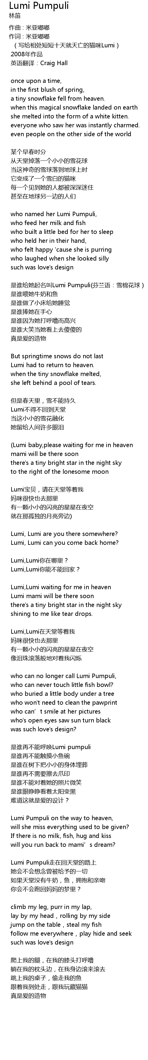 shì shuí gěi tā qǐ míng jiào Lumi Pumpuli fēn lán yǔ: xuě mián huā qiú