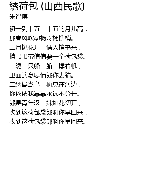 | Song | 绣荷包 (山西民歌) |