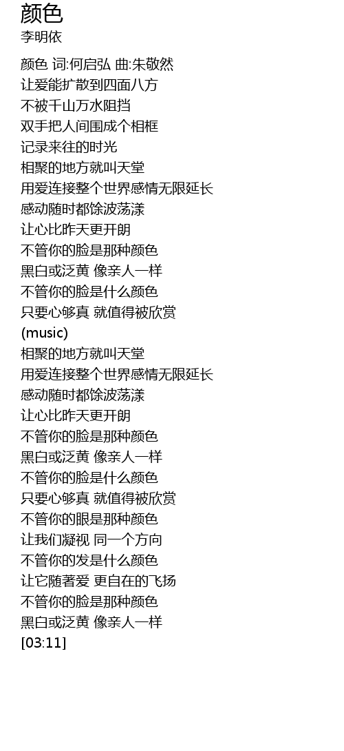 | [00:00] | 颜色 词:何启弘 曲:朱敬然 |