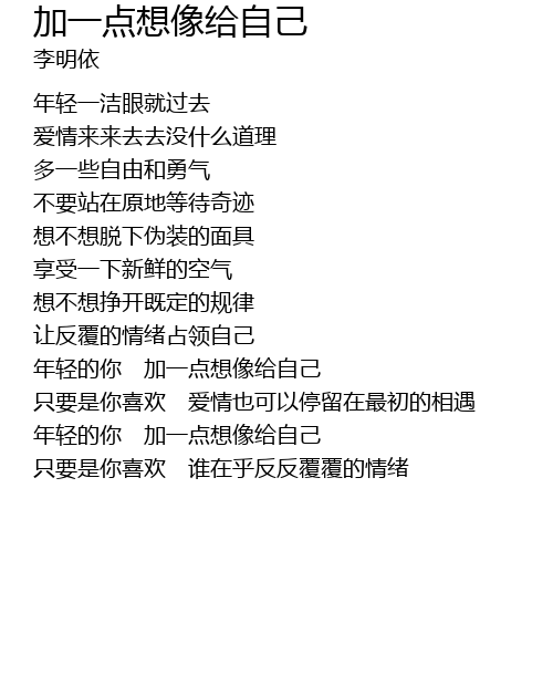 | nián qīng de nǐ jiā yì diǎn xiǎng xiàng gěi zì jǐ | |