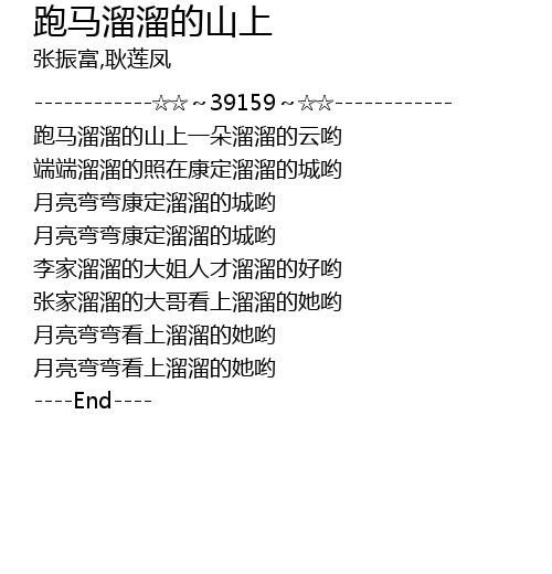 | [00:54.53] | 张家溜溜的大哥看上溜溜的她哟 |