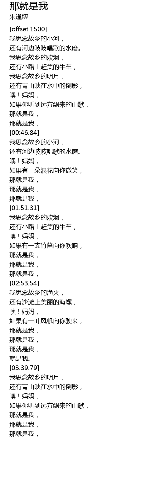 [01:06.93] 我思念故乡的小河,