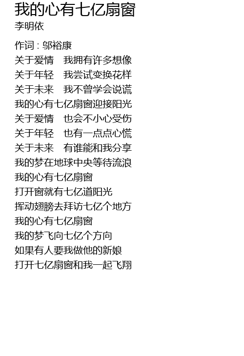 | wǒ de xīn yǒu qī yì shàn chuāng | |