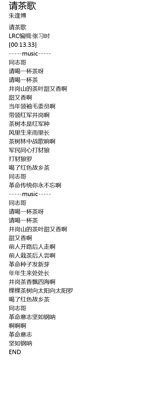 | [01:38.16] | 井岗茶香飘四海啊 |