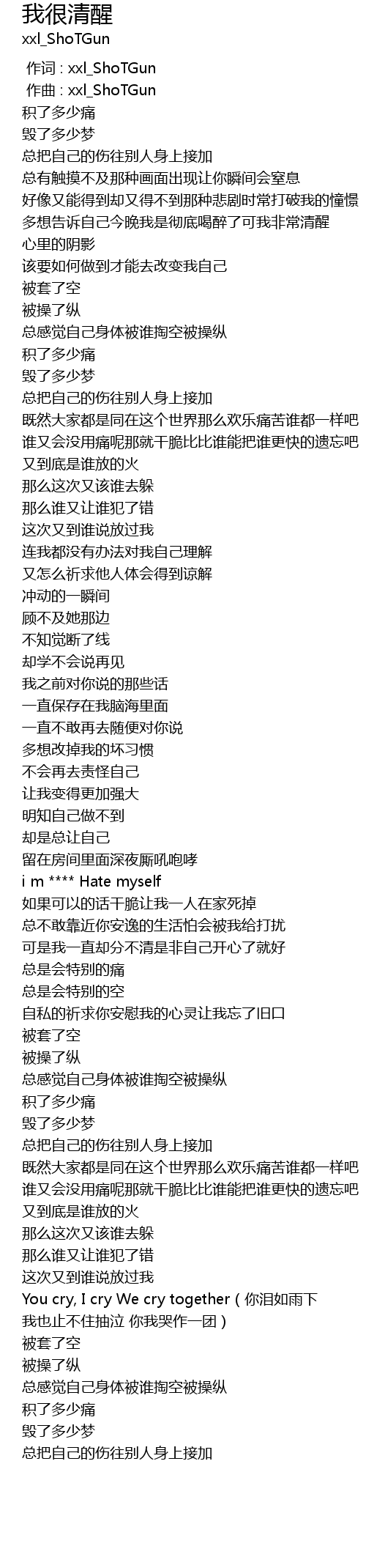 | [00:00.000] | 作词 : xxl_ShoTGun |