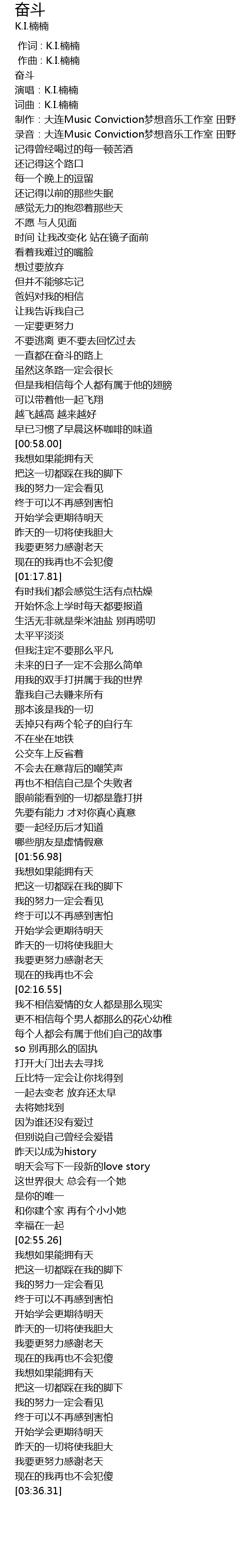 | [00:43.56] | yī zhí dōu zài fèn dòu de lù shàng |
