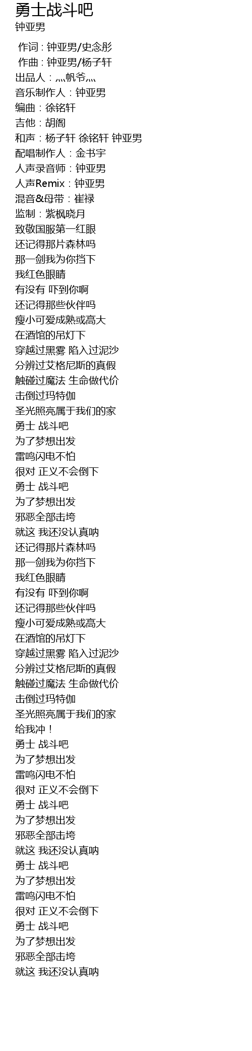 | [01:12.189] | yǒng shì zhàn dòu ba |