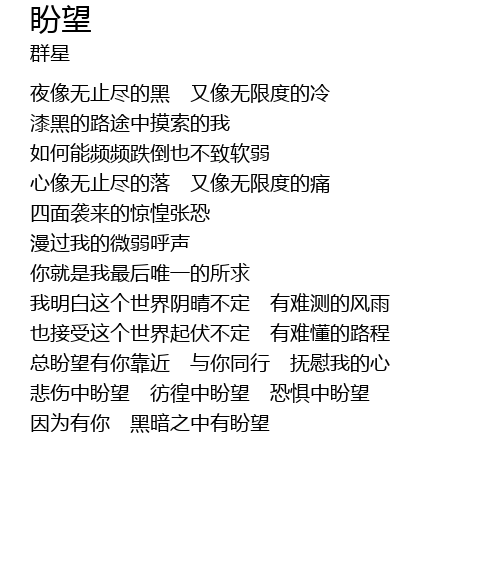 | 因为有你 黑暗之中有盼望 |