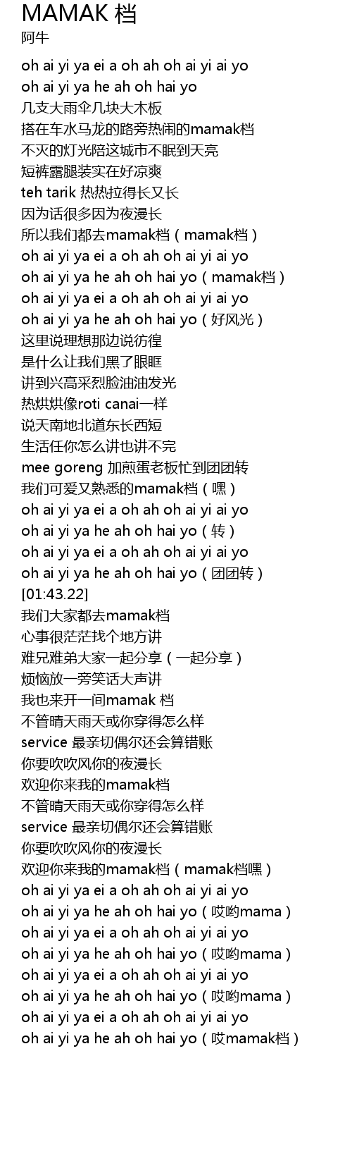 | [02:20.77] | 欢迎你来我的mamak档 |