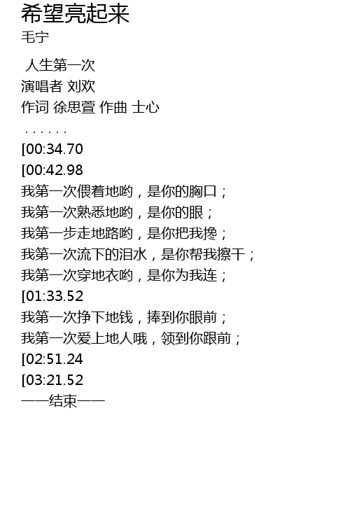 | [02:24.20][00:34.70] | 我第一次听到地哟,是你的喊; |