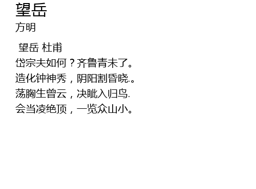 | [00:20.010] | 岱宗夫如何?齐鲁青未了。 |