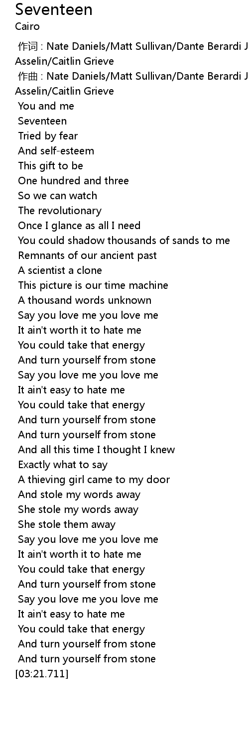 | [00:00.000] | 作词 : Nate Daniels/Matt Sullivan/Dante Berardi Jr./Nygel Asselin/Caitlin Grieve |