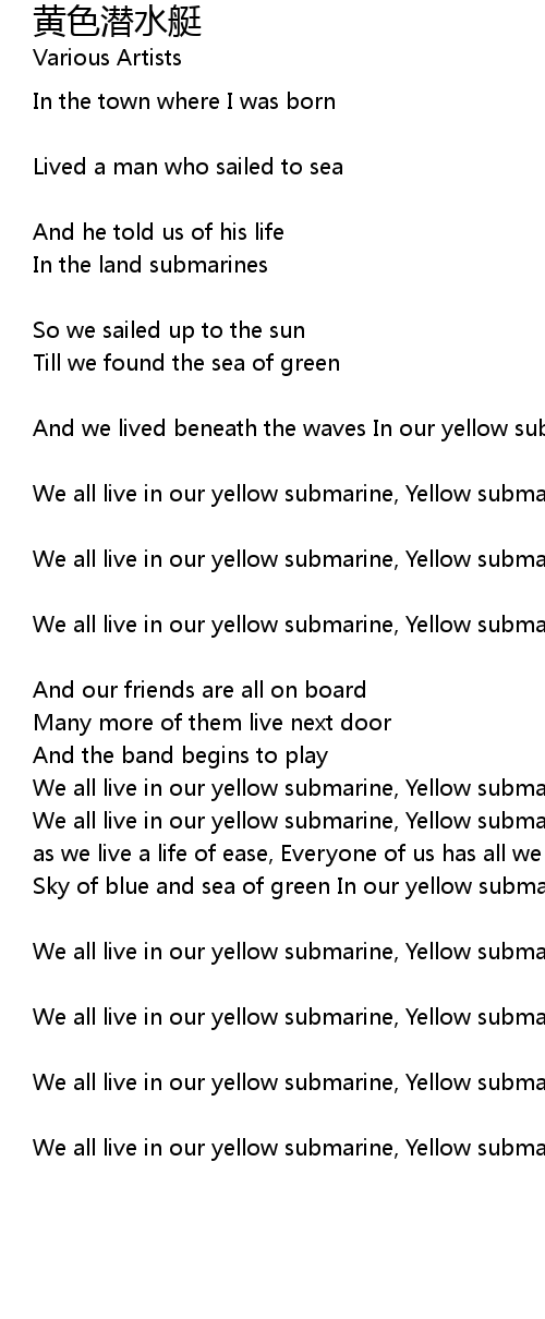 We all live in our yellow submarine, Yellow submarine, Yellow submarine |
