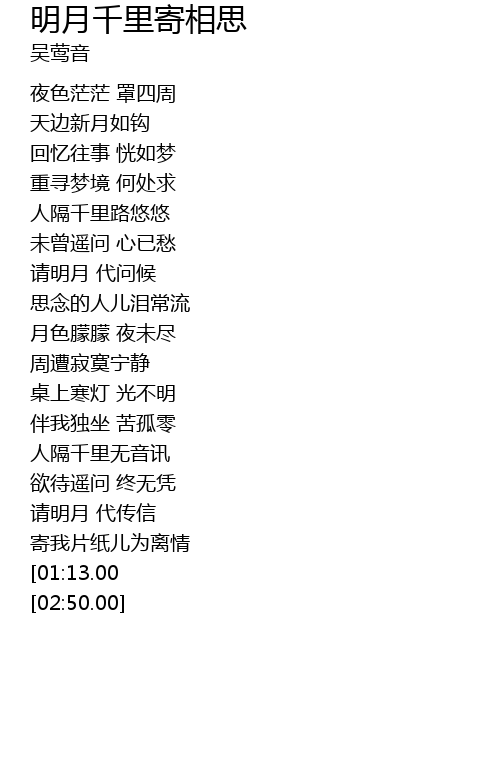 | [02:32.00] | qǐng míng yuè dài chuán xìn |