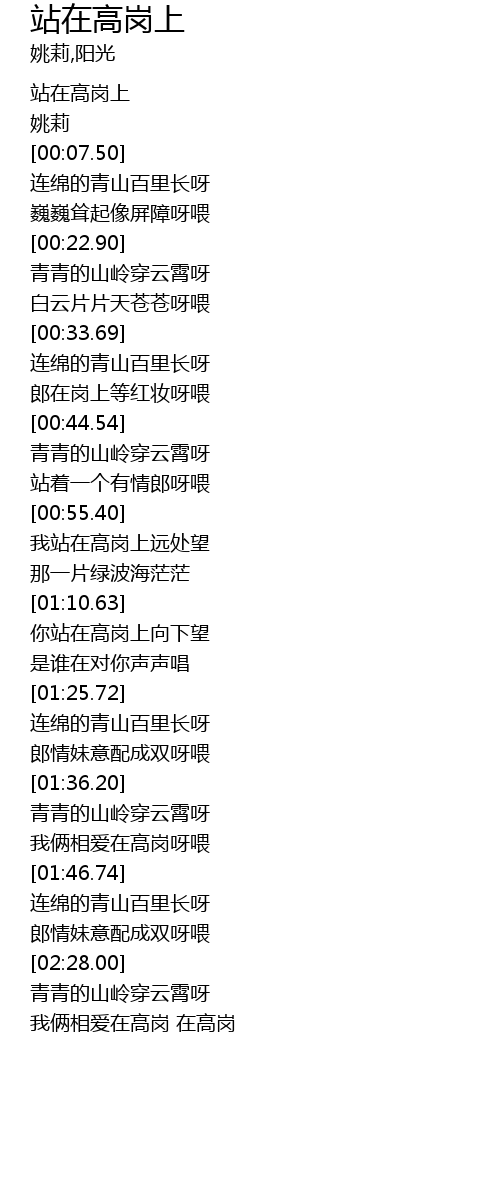 | [01:42.14] | 我俩相爱在高岗呀喂 |