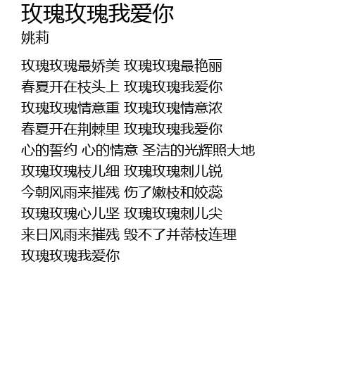 | [01:28.95] | 玫瑰玫瑰心儿坚 玫瑰玫瑰刺儿尖 |