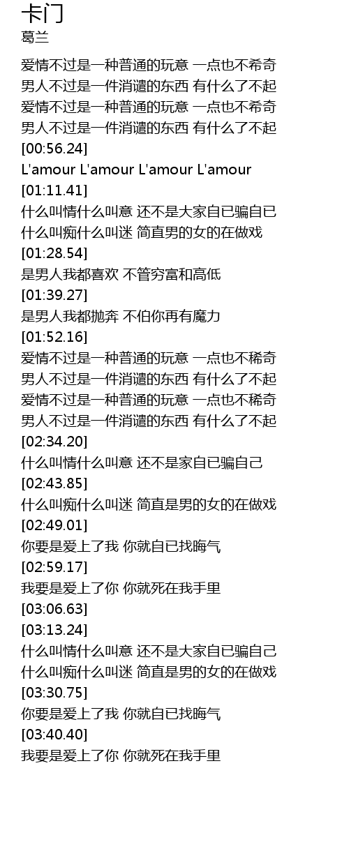 [00:59.79] L' amour L' amour L' amour L' amour