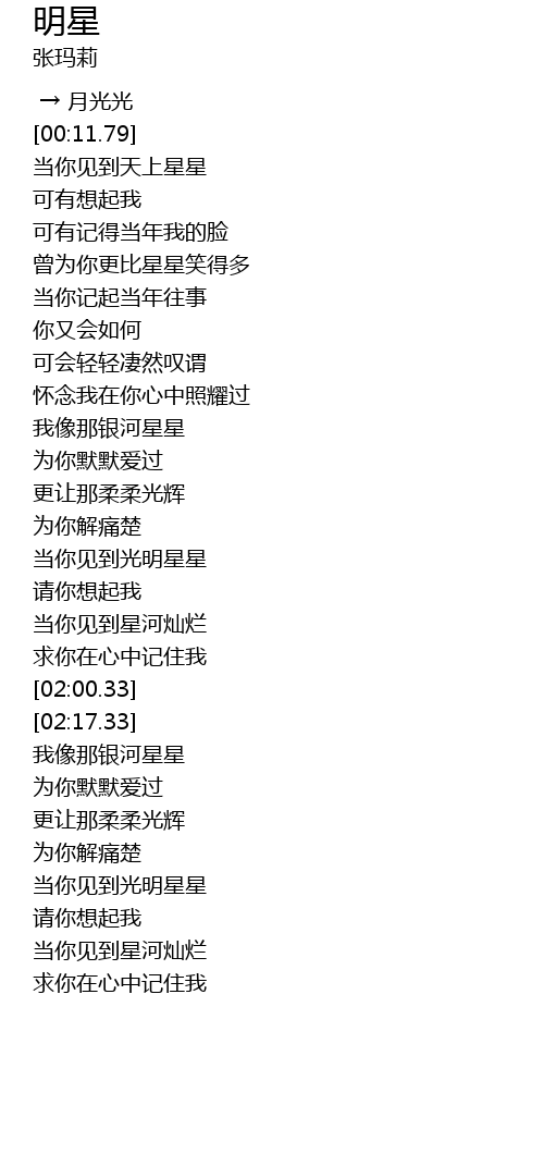 | [02:18.33] | 我像那银河星星 |