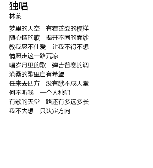 | hé bù tīng wǒ yí ge rén dú chàng | |
