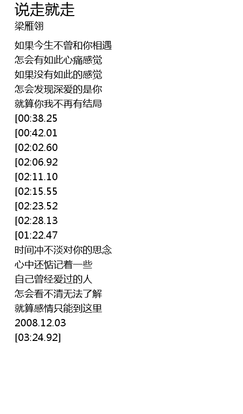 | [01:55.93][00:42.01] | 头也不回 说走就走 |