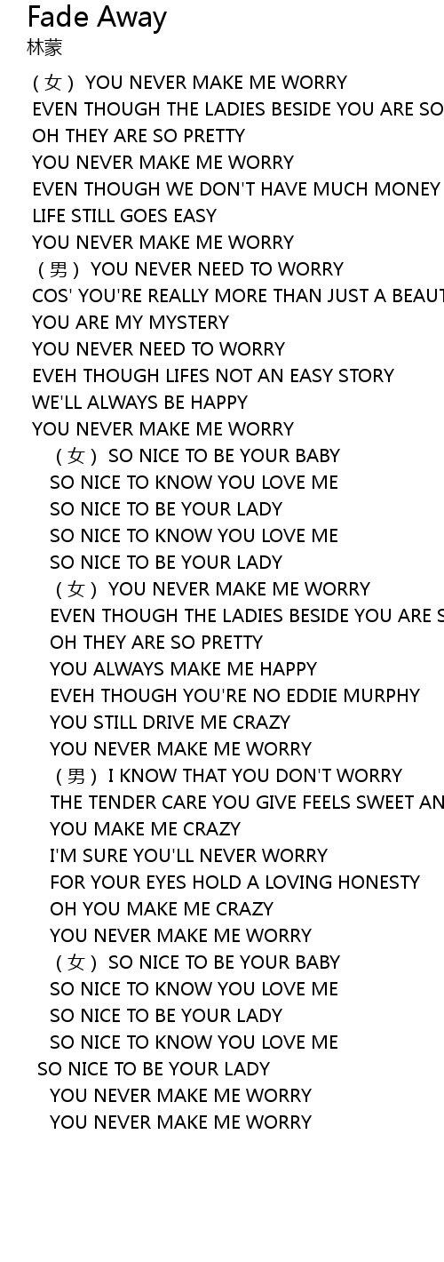 | [00:22.24] | nǚ YOU NEVER MAKE ME WORRY |