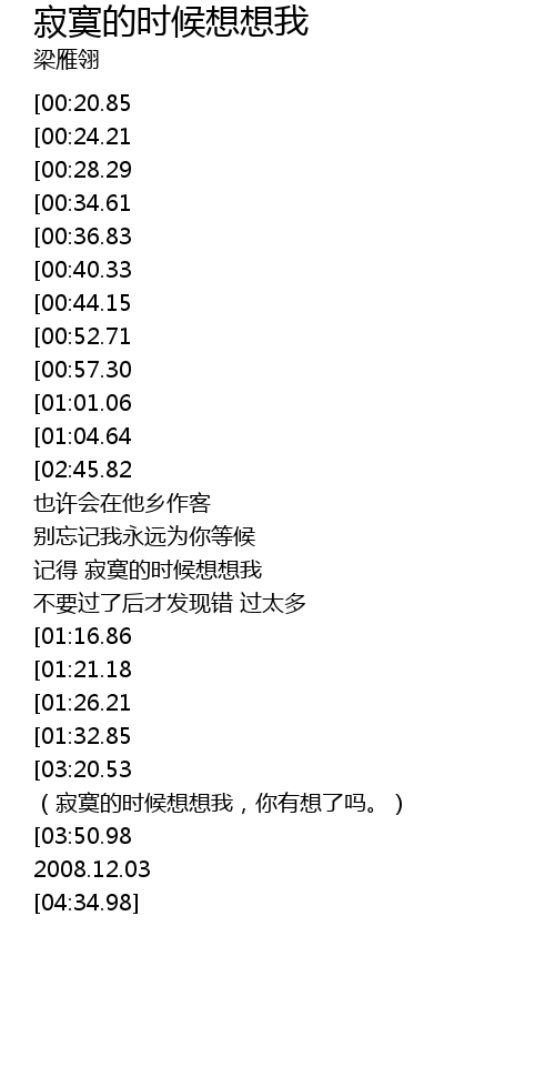 | [03:39.02] | (寂寞的时候想想我,你有想了吗。) |