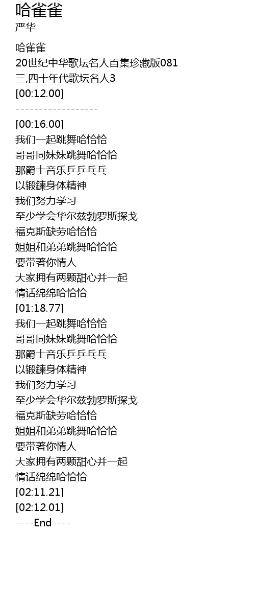 | [00:02.00] | 哈雀雀 |