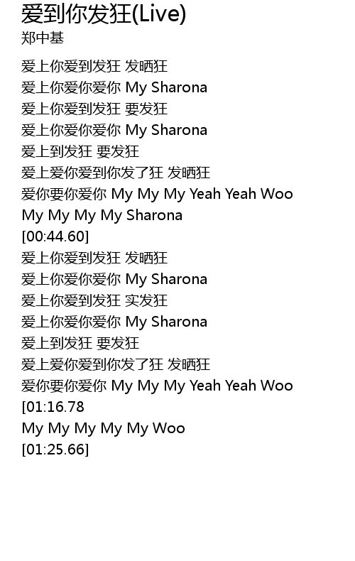 | [00:56.48] | 爱上你爱你爱你 My Sharona |