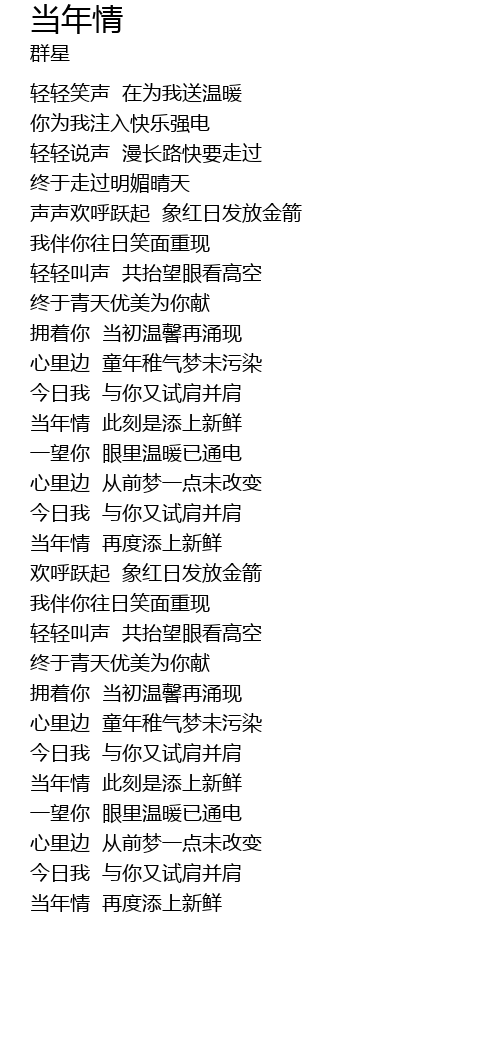 | [02:00.00] | 当年情 再度添上新鲜 |