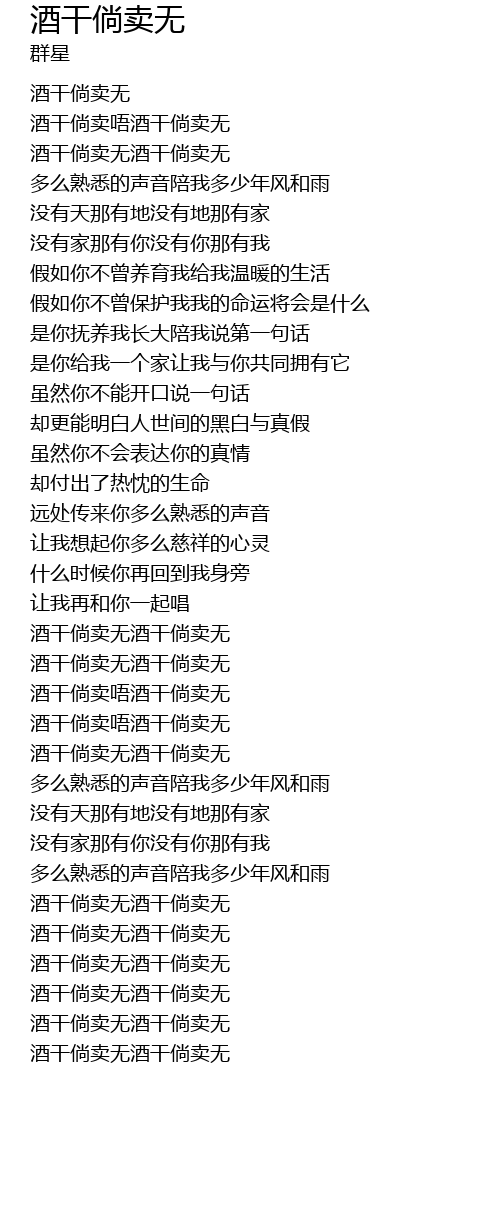 | [00:40.51] | jiǔ gàn tǎng mài wú jiǔ gàn tǎng mài wú |