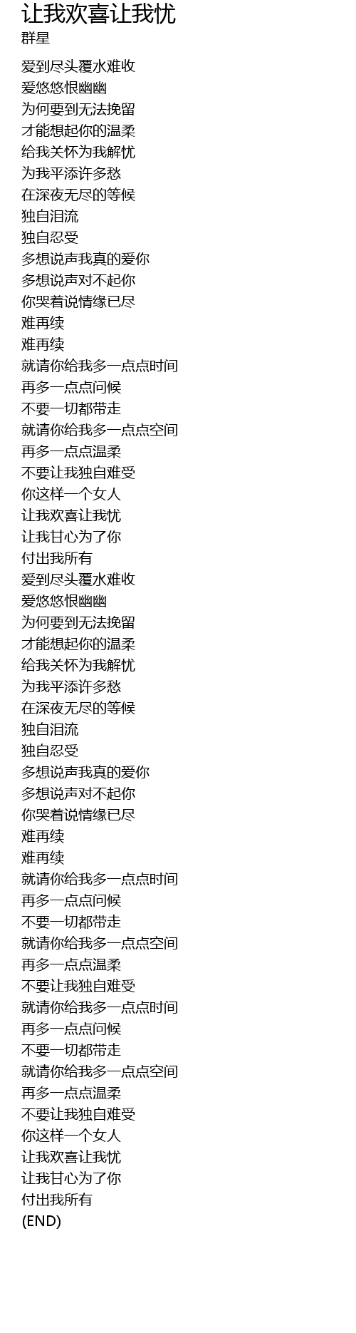 | [00:21.00] | ài yōu yōu hèn yōu yōu |
