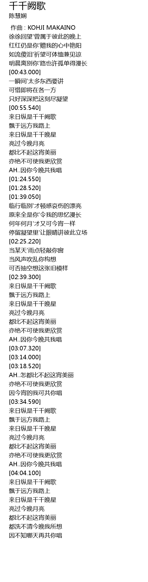 | [04:04.460] | 来日纵是千千阙歌 |