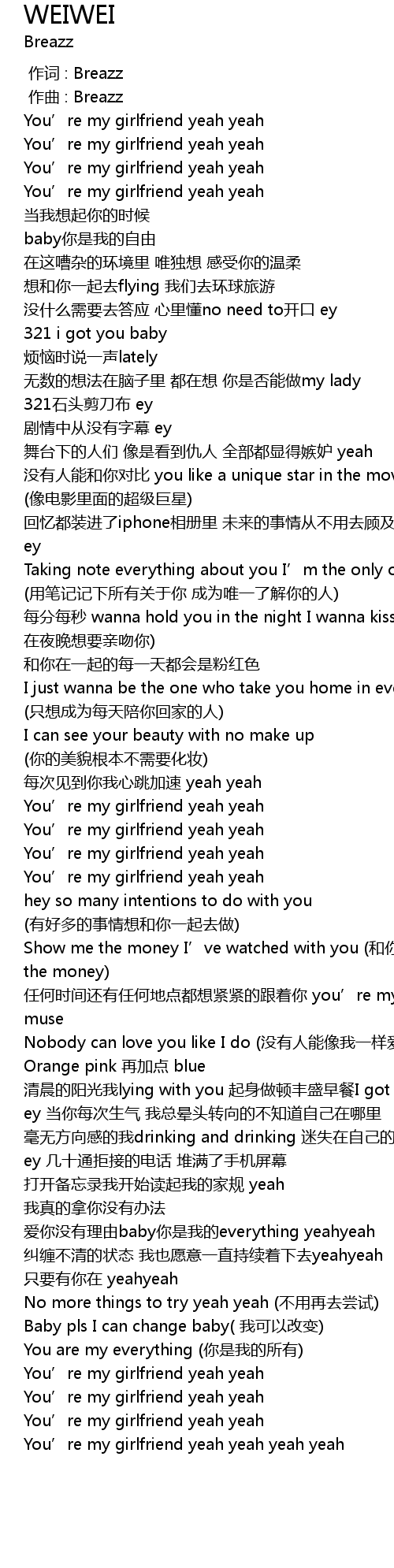 | [00:18.251] | You' re my girlfriend yeah yeah |